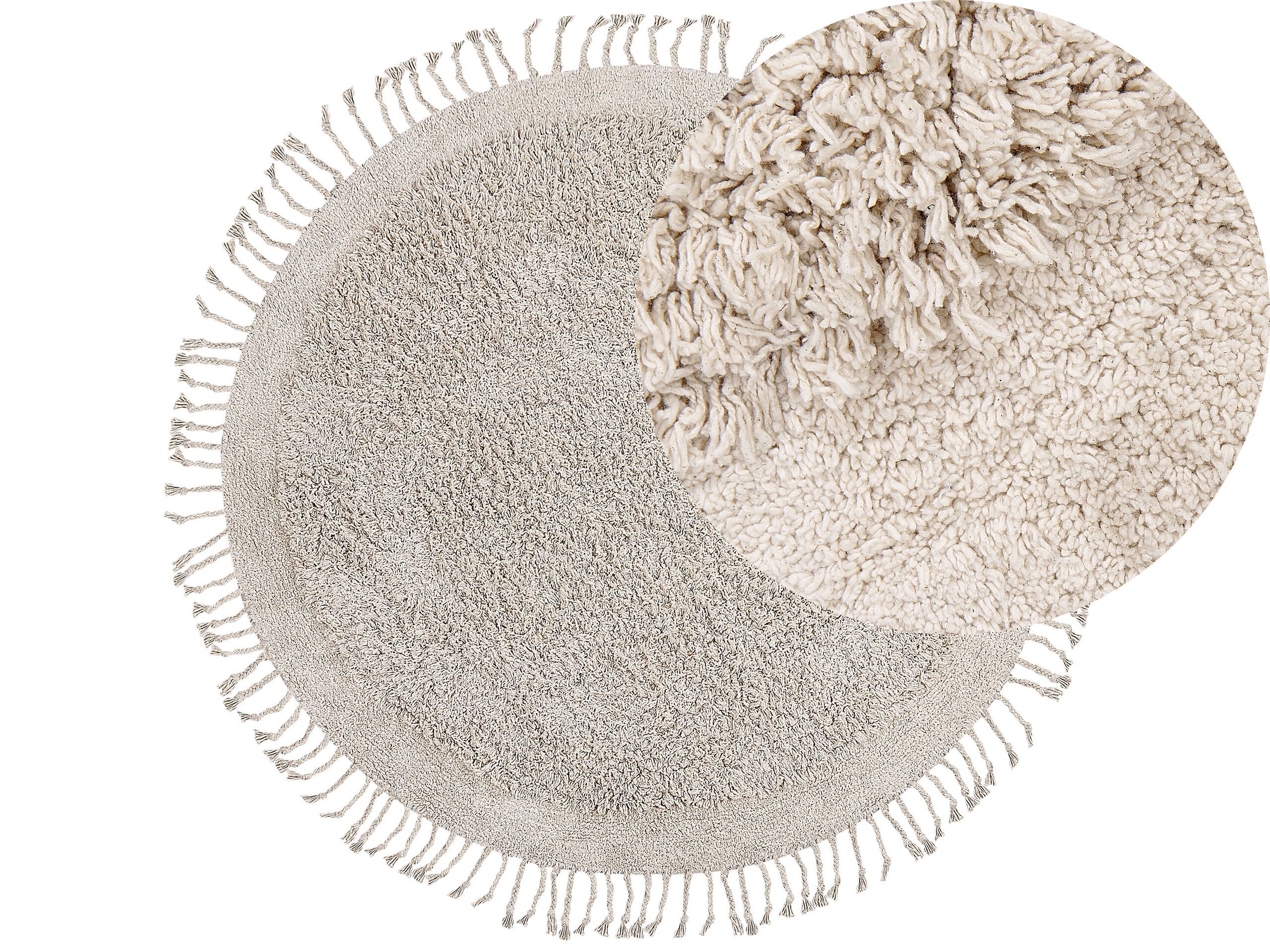Round Cotton Shaggy Area Rug 140cm Light Beige