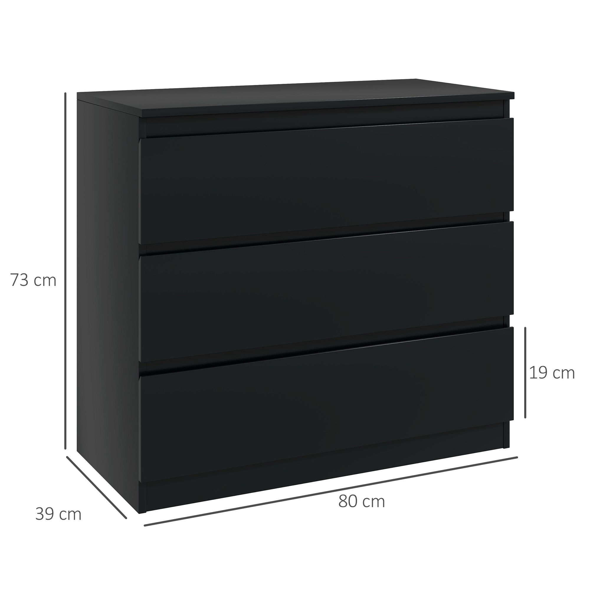 ROWAN Black Chest of Drawers - Medium-sized, 3 Drawers
