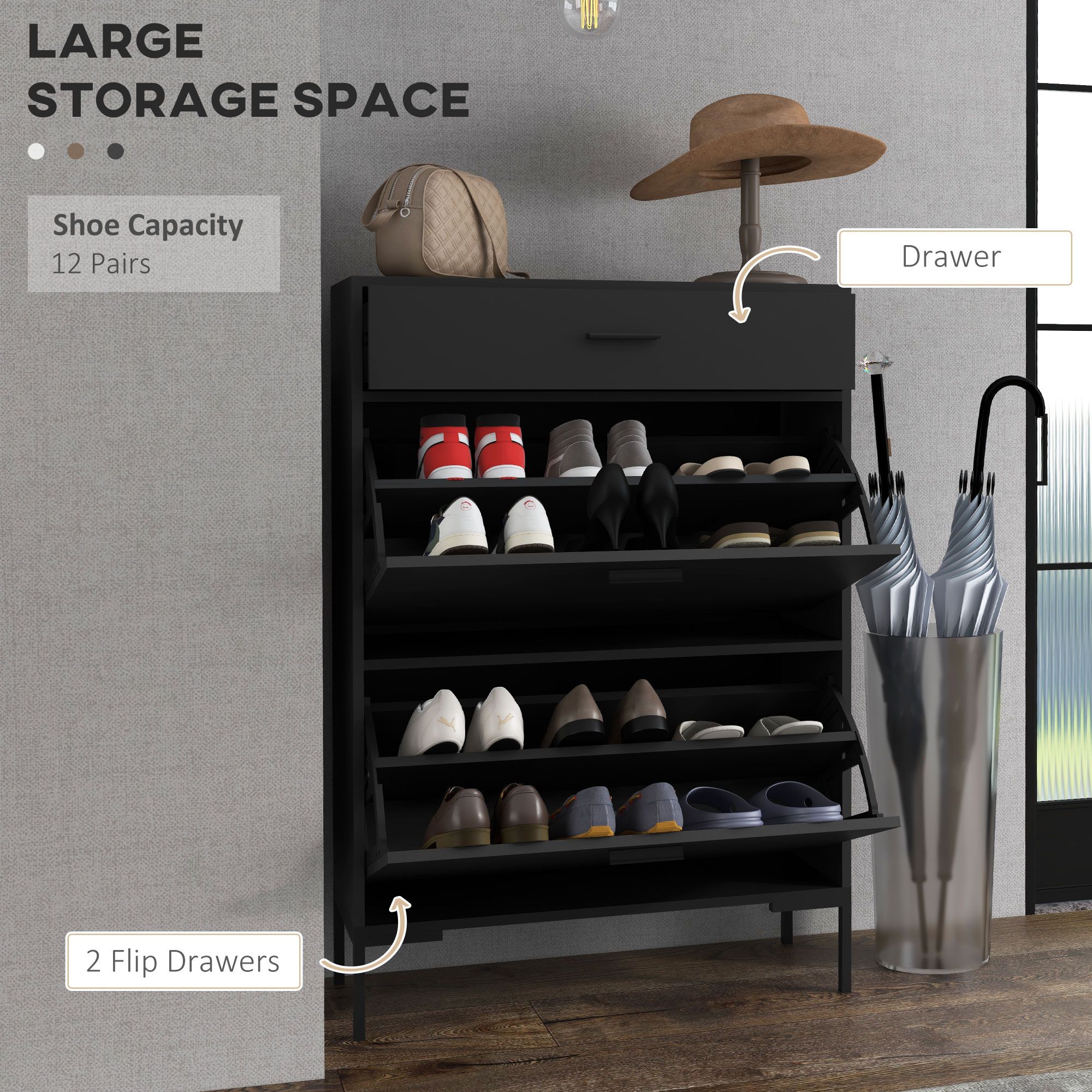 SCOTA 3 Drawer Shoe Cabinet with Adjustable Shelf - Black