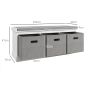 Scott Shoe Storage Bench with Cushion and 3 Fabric Drawers - White