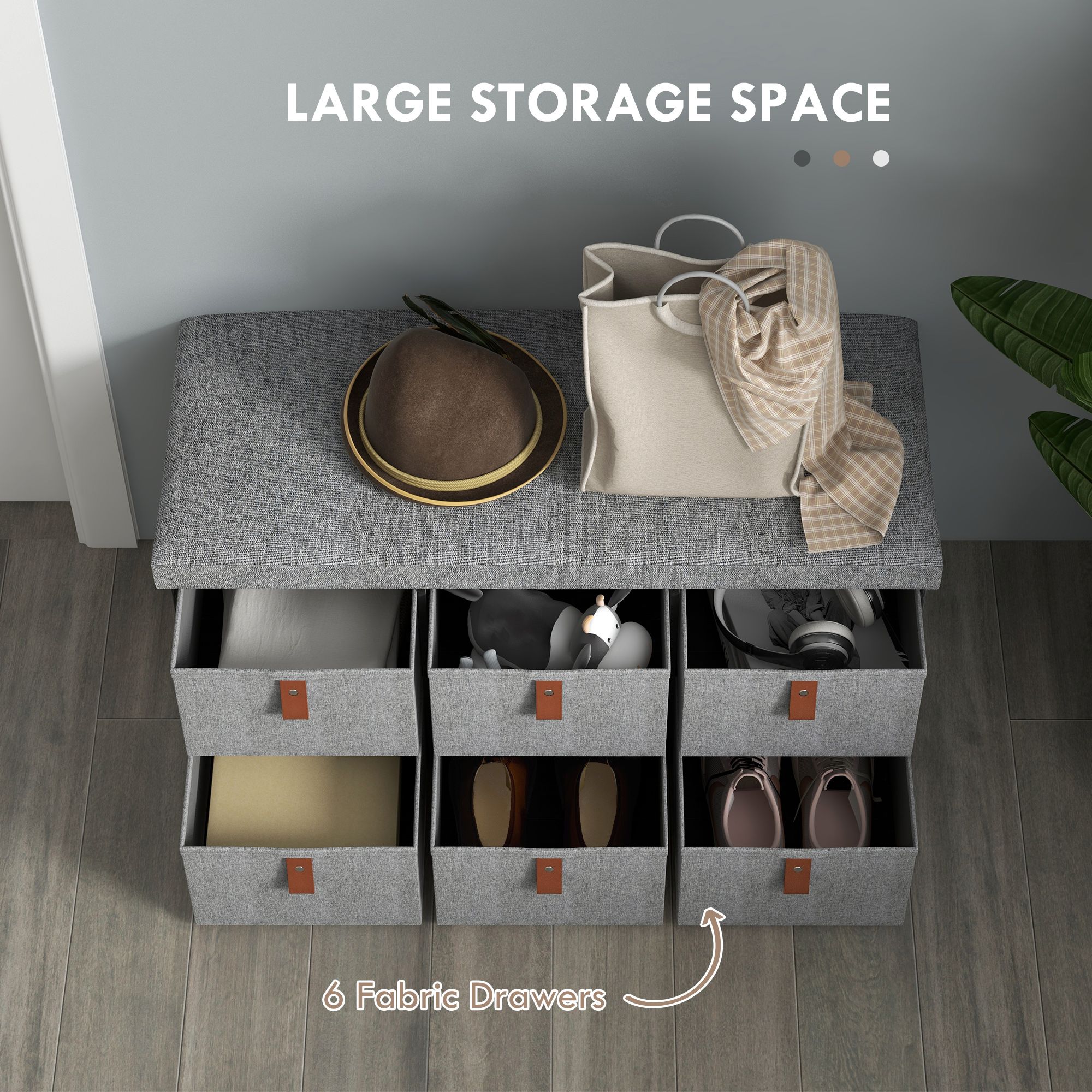 Scott Shoe Storage Bench with Cushion and 6 Drawers - Light Grey