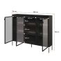 Elevate your space with the Scribble Spex Display Cabinet, a fusion of style and functionality. Adorned with three partially glassed hinged doors, the contemporary design meets practicality with a convenient push-to-open system. Six shelves offer versatile space for displaying or organizing your cherished items. The sleek black metal legs add a touch of sophistication, while the high-quality 16mm laminated board ensures durability. Assembly is required, inviting you to personalize your showcase of style and elegance.