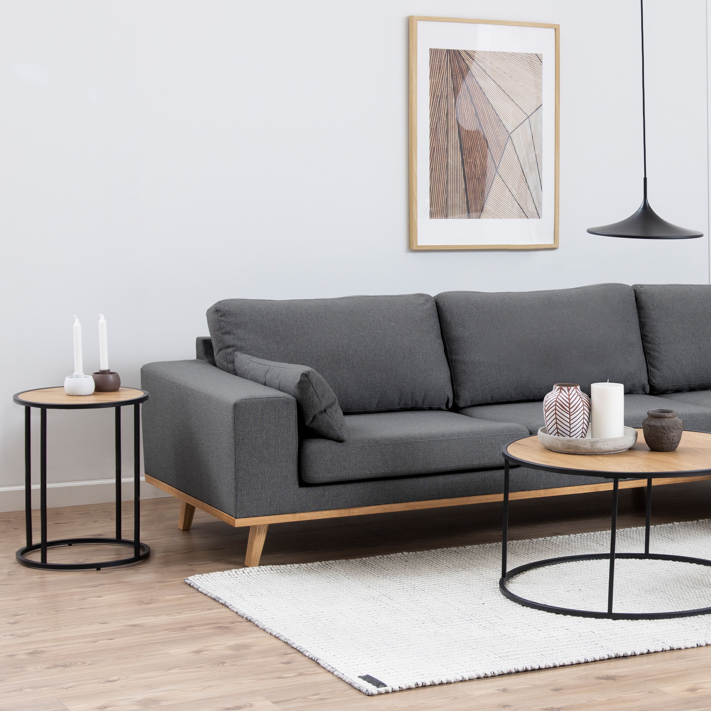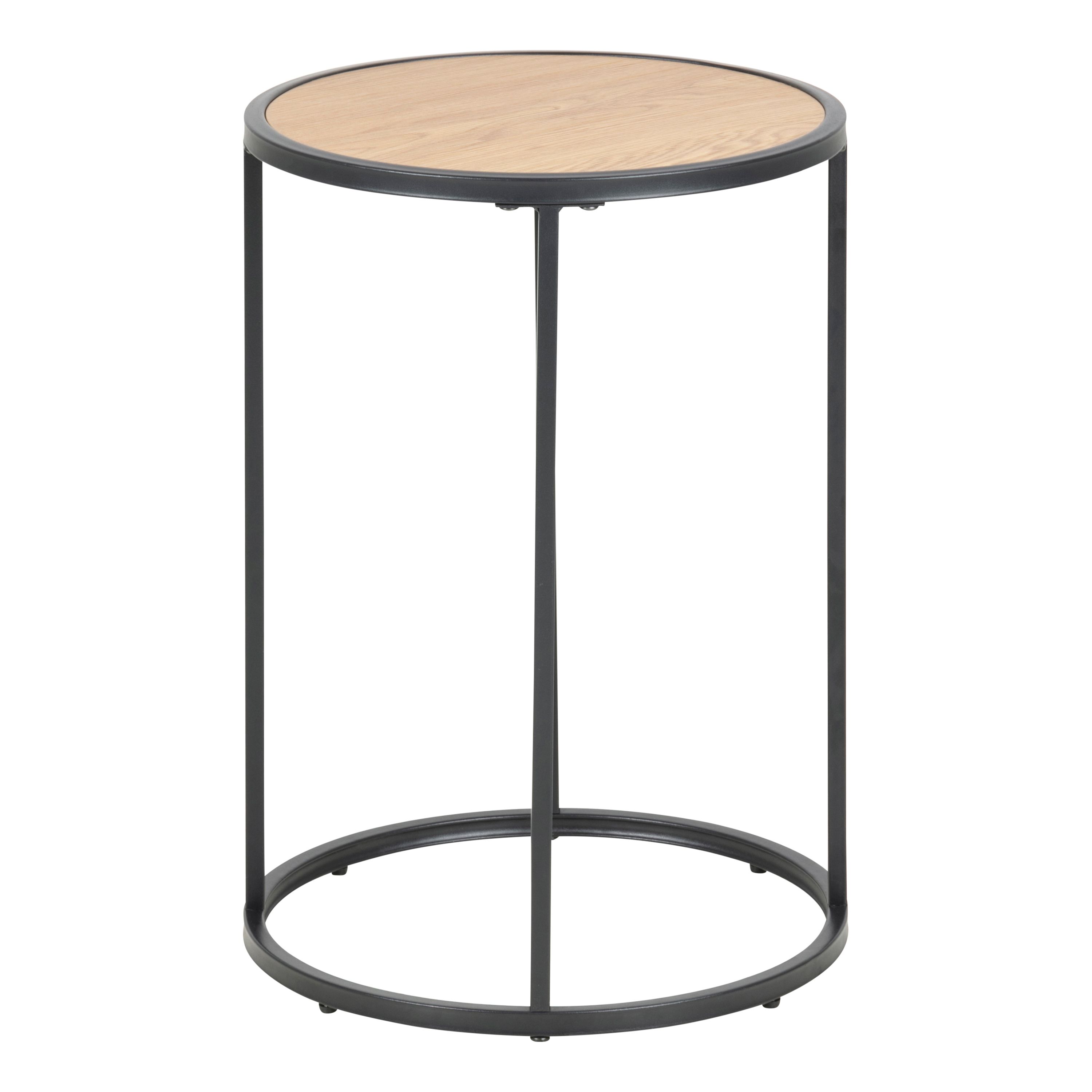 Seaford Black Metal Small Round Side Table with Oak Top