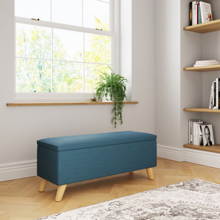 This ottoman like Secreto makes a smart addition to any home, offering a handy extra seating option that conceals invaluable storage space within. Perfect at the foot of a bed or under a window, the ottoman creates a modern vibe, thanks to the quality hopsack upholstery in a light grey, charcoal or mustard and contrasting pale wood legs. Simply lift the lid to reveal an ample 76-litre storage compartment thats ideal for storing ex-tra bedding, throws or childrens toys.