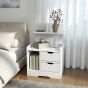 High Gloss Bedside Table with 2 Drawers - White