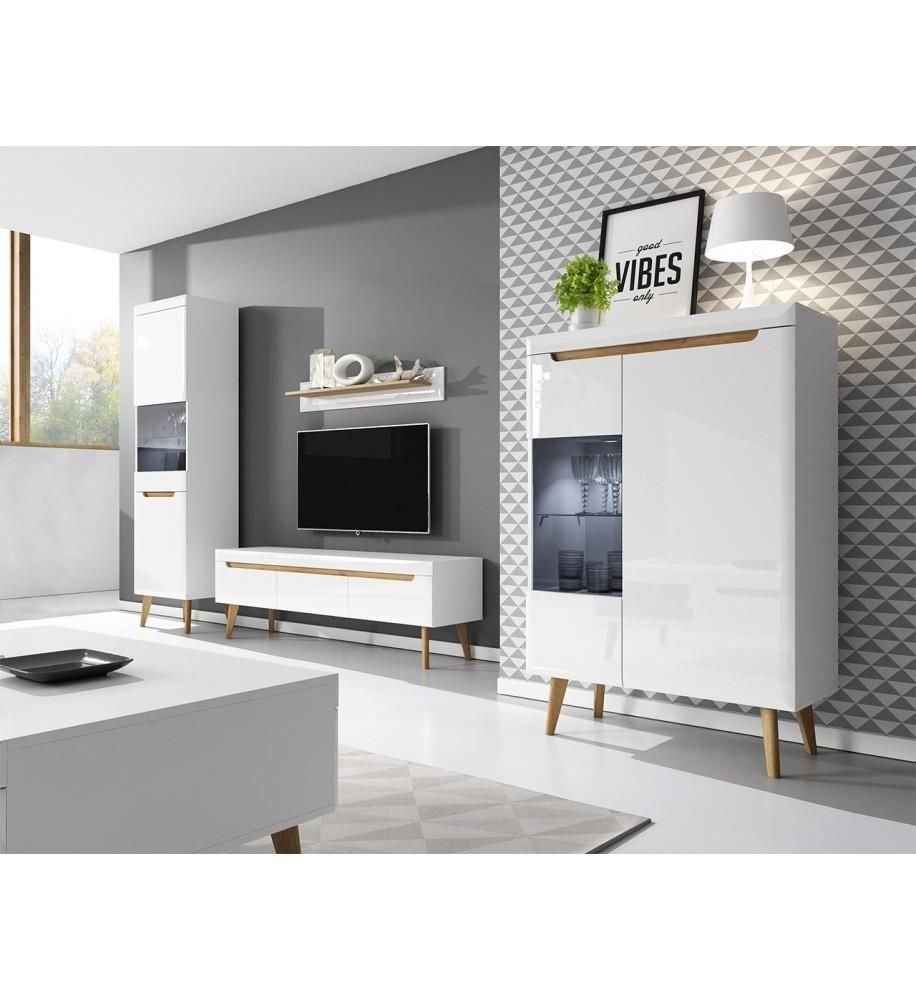 - Colour: White Matt carcass and White High Gloss with Oak Riviera decor and legs