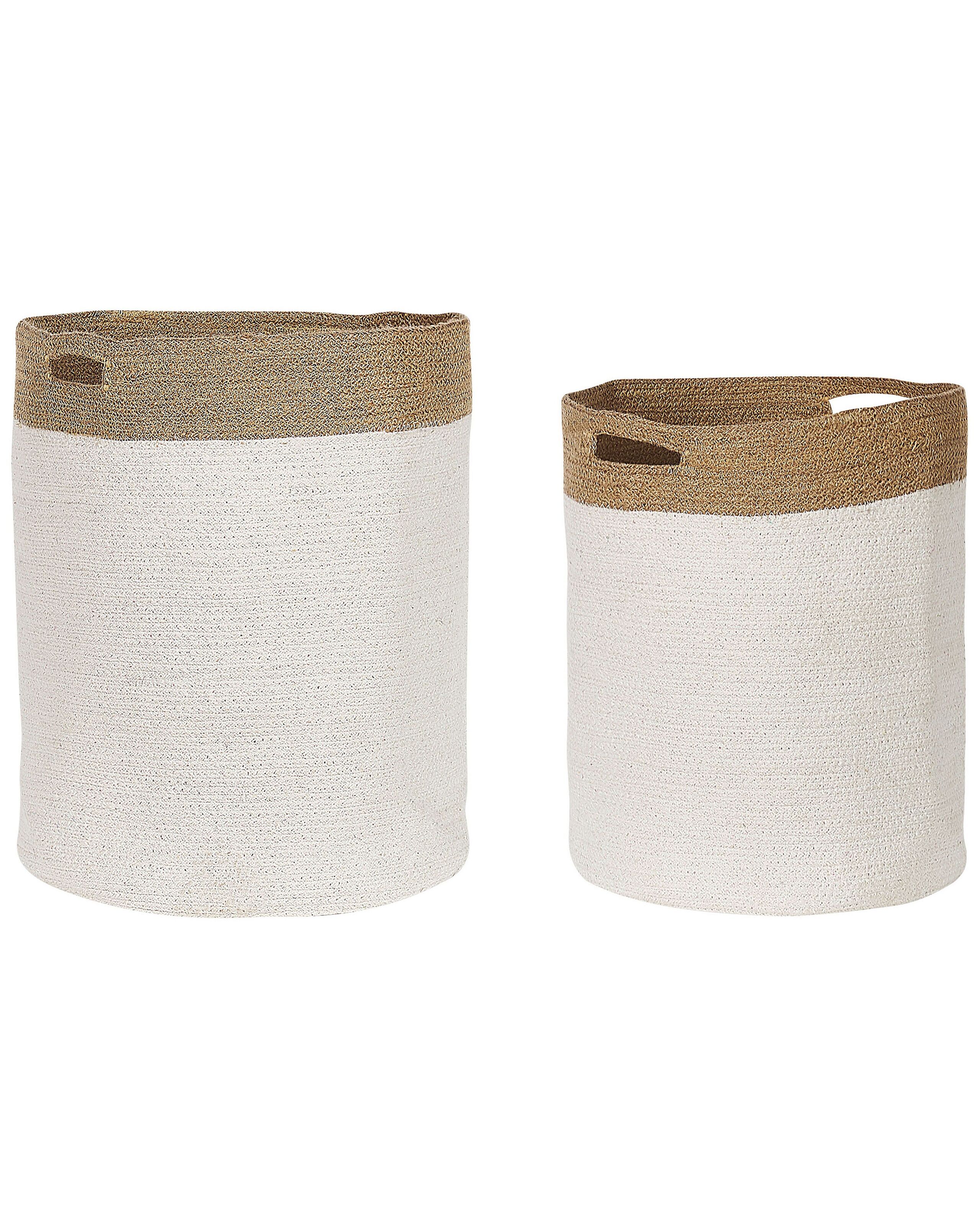 Set of 2 Cotton Baskets White and Beige