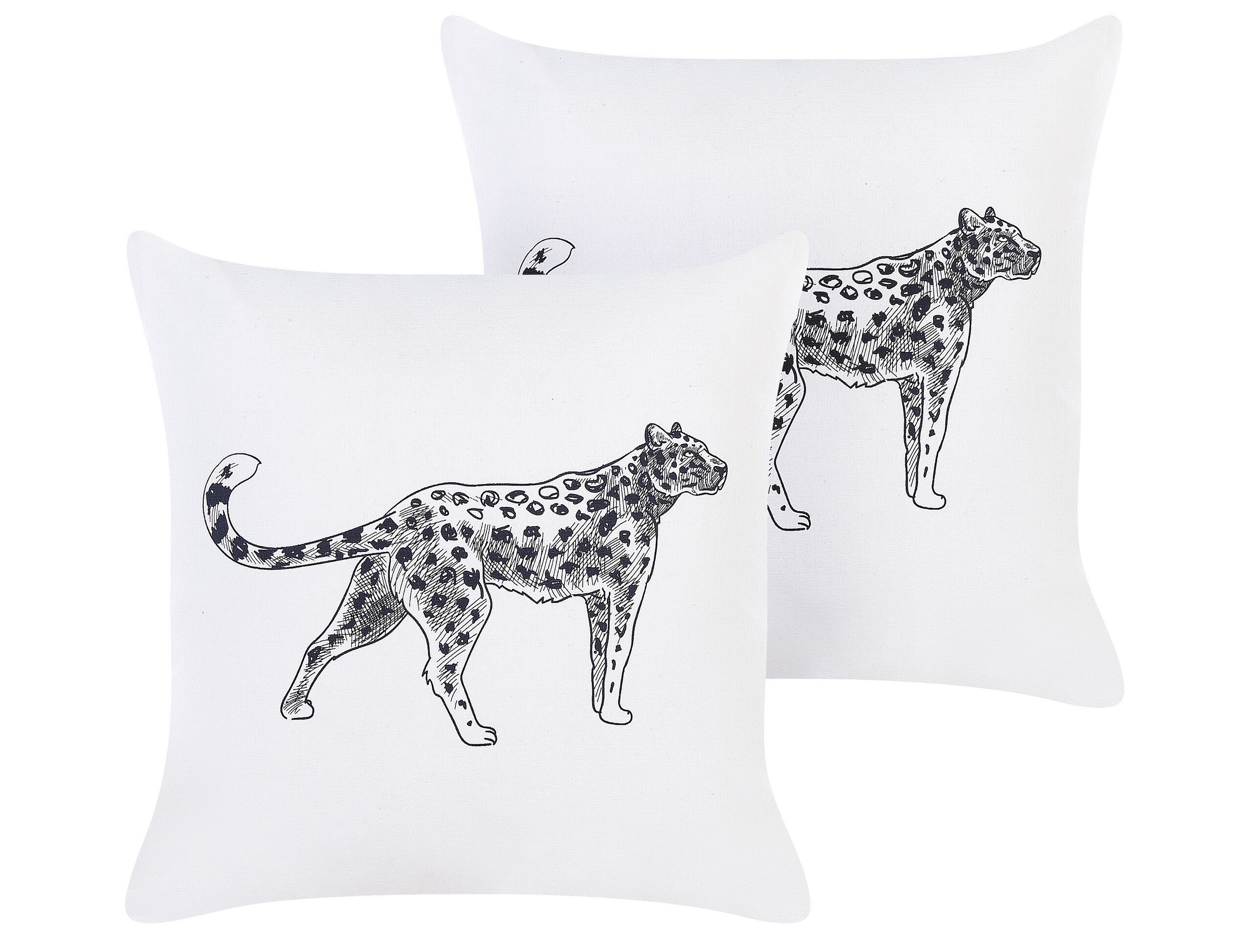 Set of 2 Cotton Cushions Animal Motif 45x45cm White