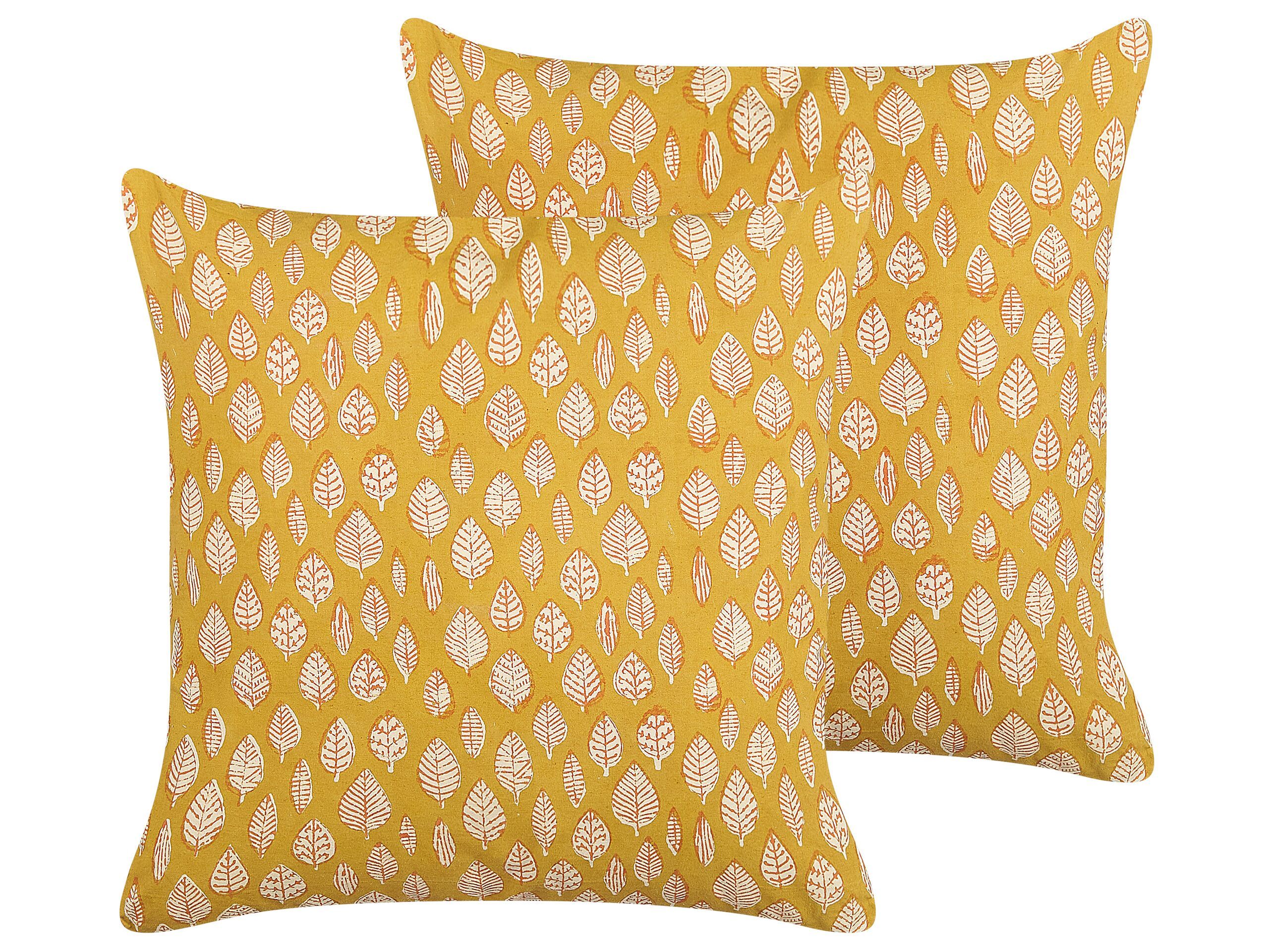Set of 2 Cotton Cushions Leaf Pattern 45x45cm Yellow