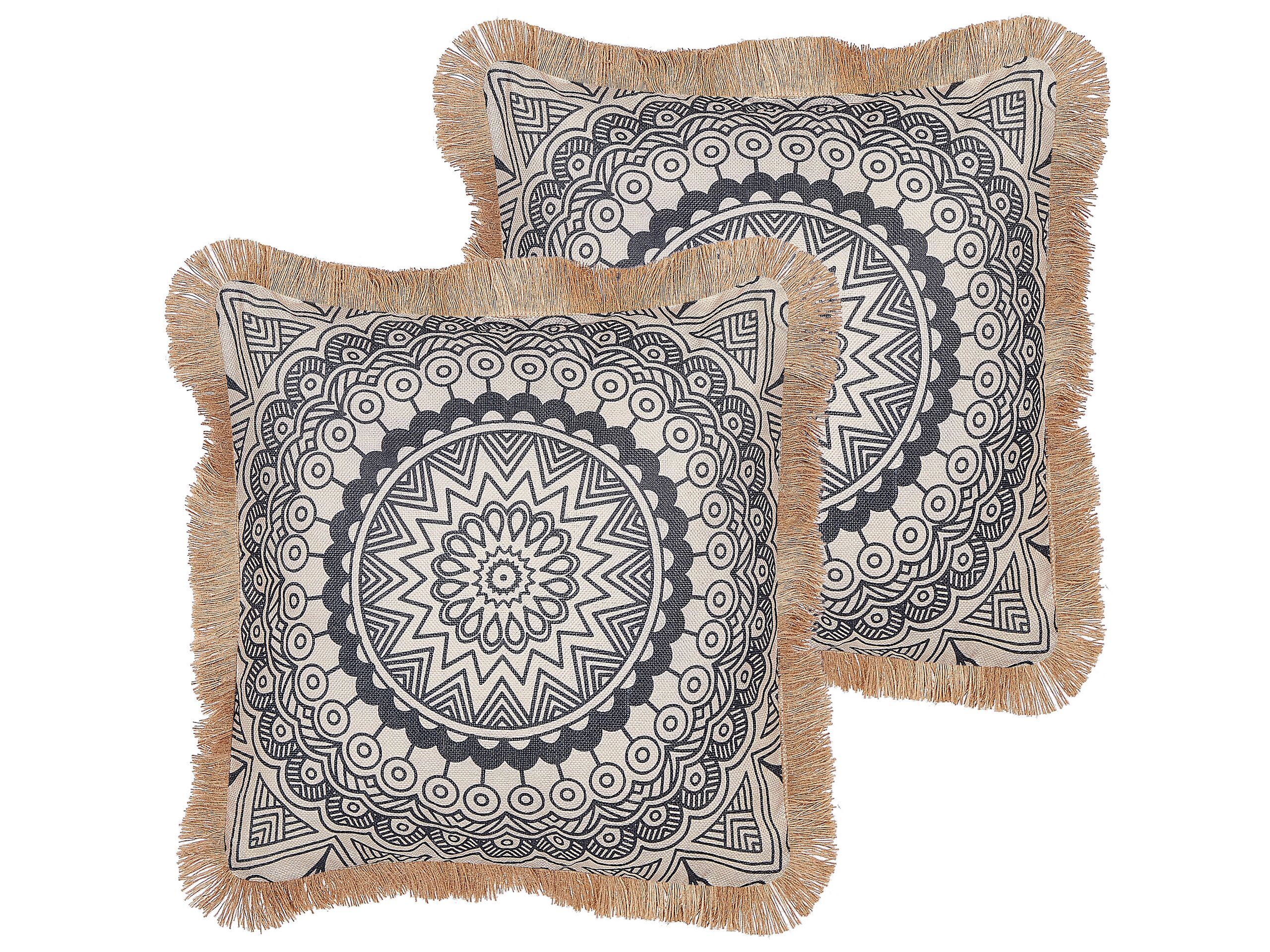 Set of 2 Cushions Boho Motif 45x45cm Black and Beige