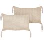 Set of 2 Cushions Geometric Pattern with Tassels 25x45cm Light Beige