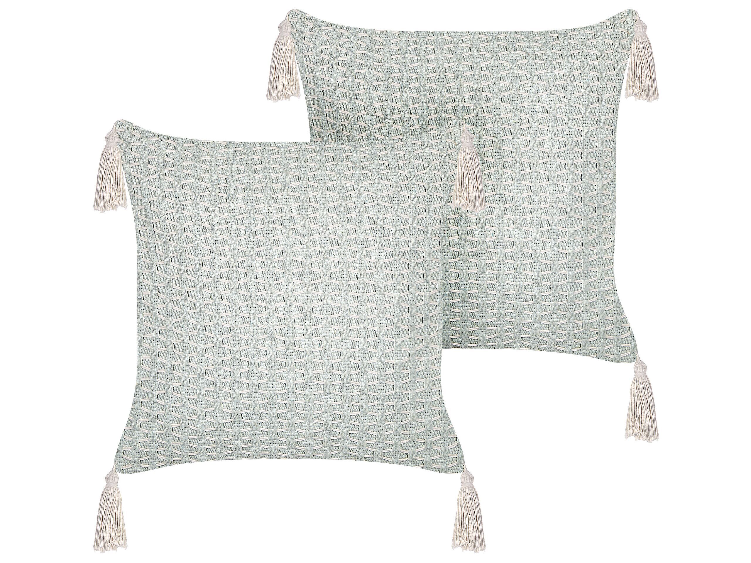 Set of 2 Cushions Geometric Pattern with Tassels 42x42cm Mint Green