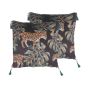Set of 2 Cushions Leopard Motif with Tassels 45x45cm Black