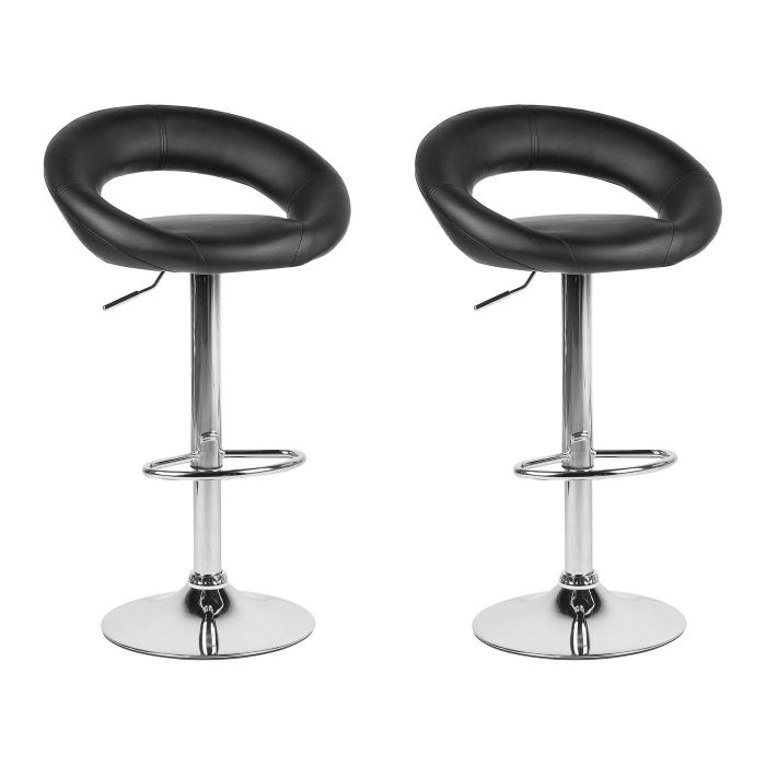 Set of 2 Faux Leather Swivel Bar Stools Black PEORIA