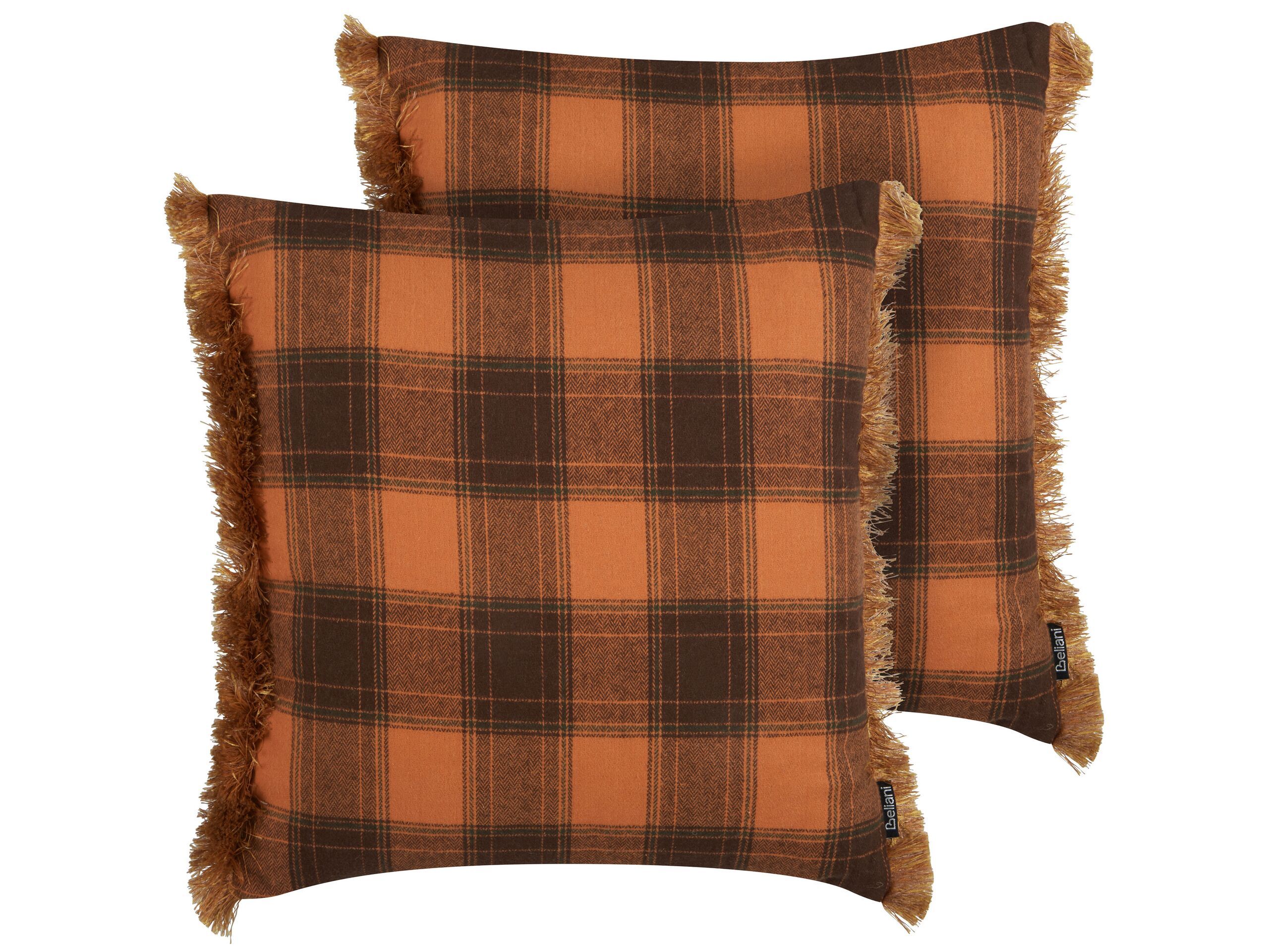 Set of 2 Fringed Cushions Chequered Pattern 45x45cm Orange
