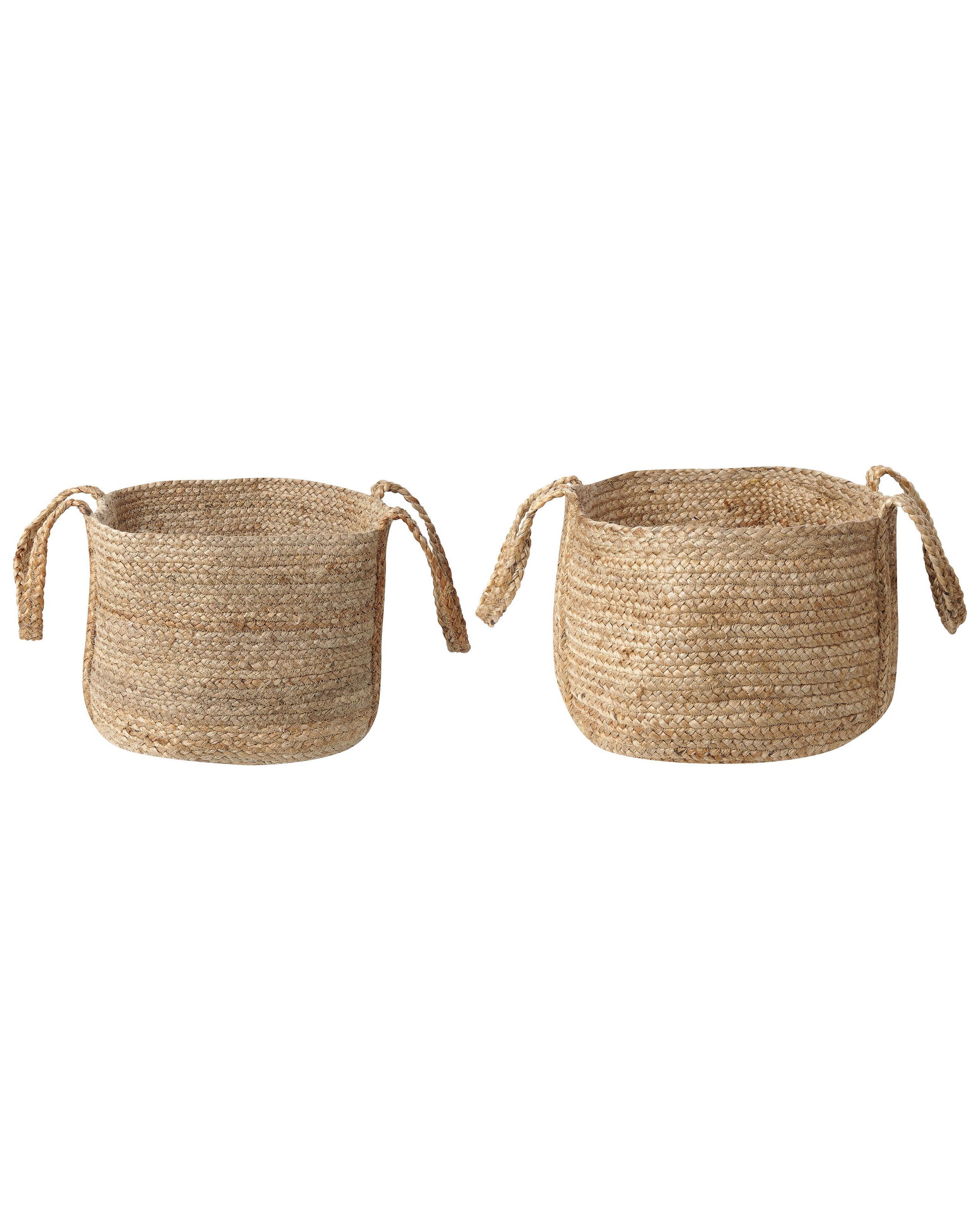 Set of 2 Jute Baskets Natural
