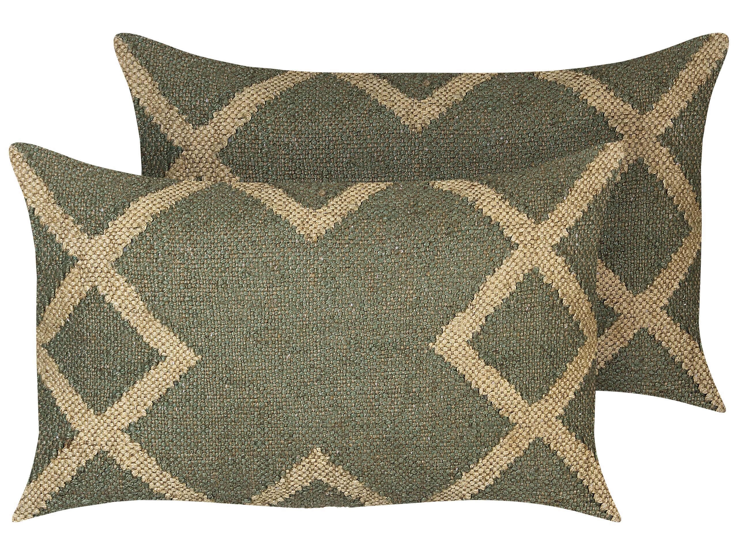 Set of 2 Jute Cushions 30x50cm Green and Beige