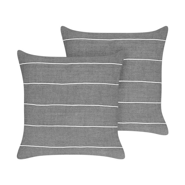 Set of 2 Linen Cushions Striped 50x50cm Grey and White