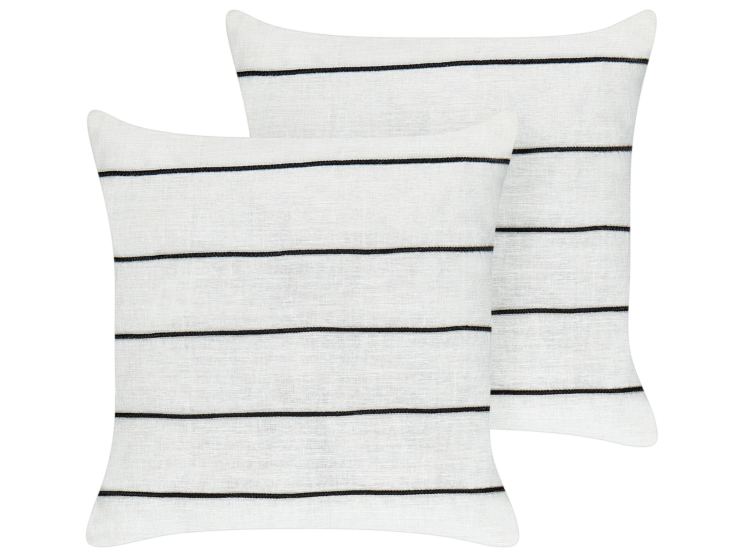 Set of 2 Linen Cushions Striped 50x50cm White and Black
