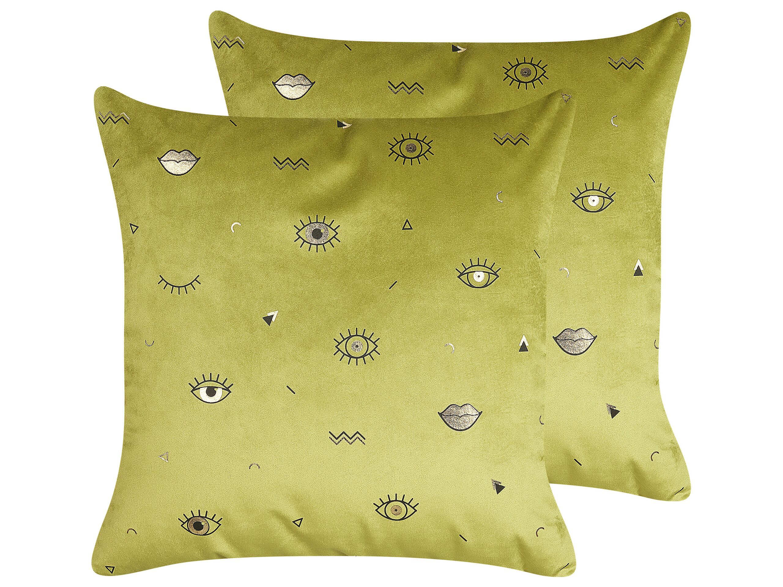 Set of 2 Velvet Cushions Eye Motif 45x45cm Green
