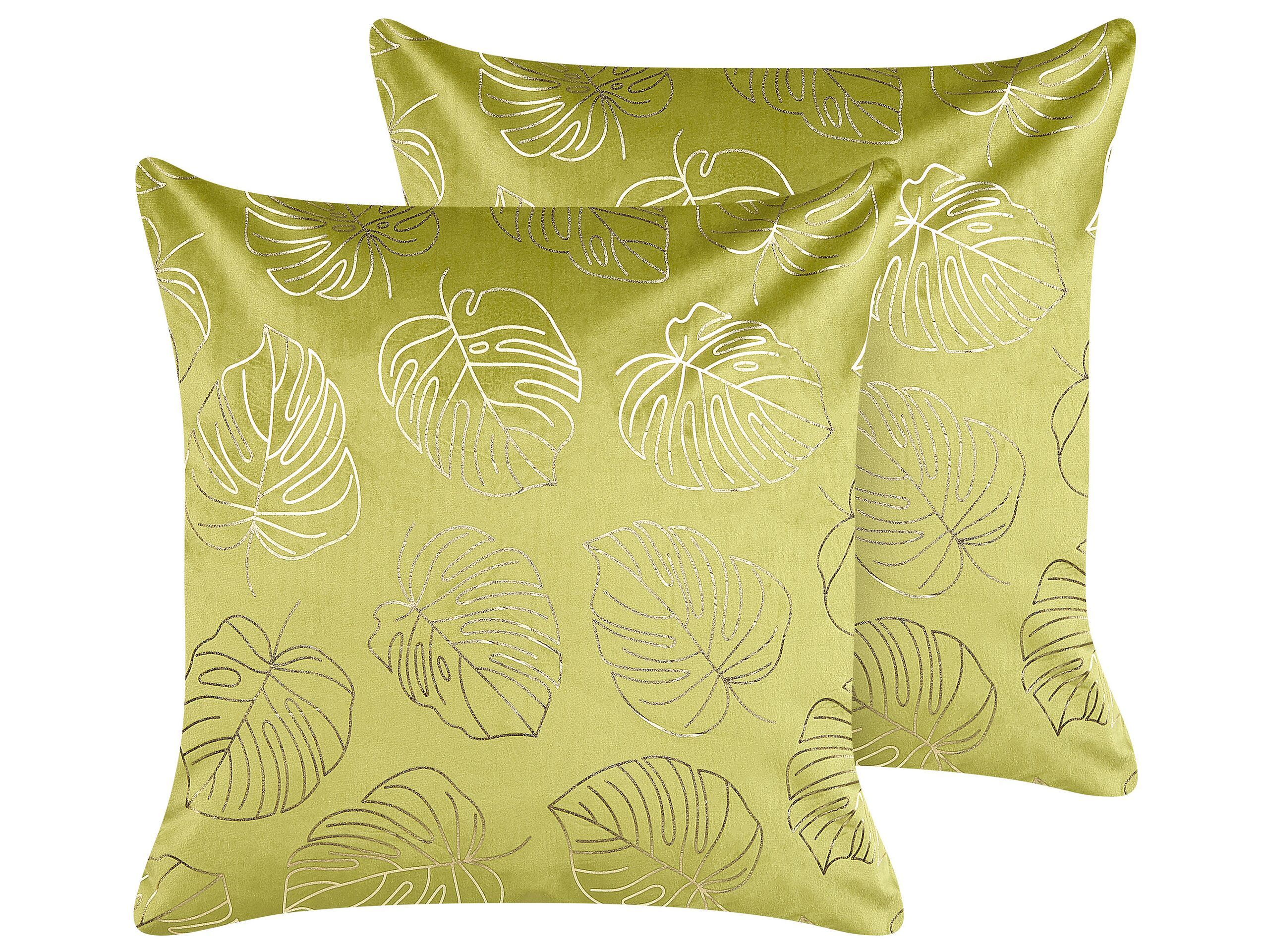 Set of 2 Velvet Cushions Leaf Pattern 45x45cm Light Green