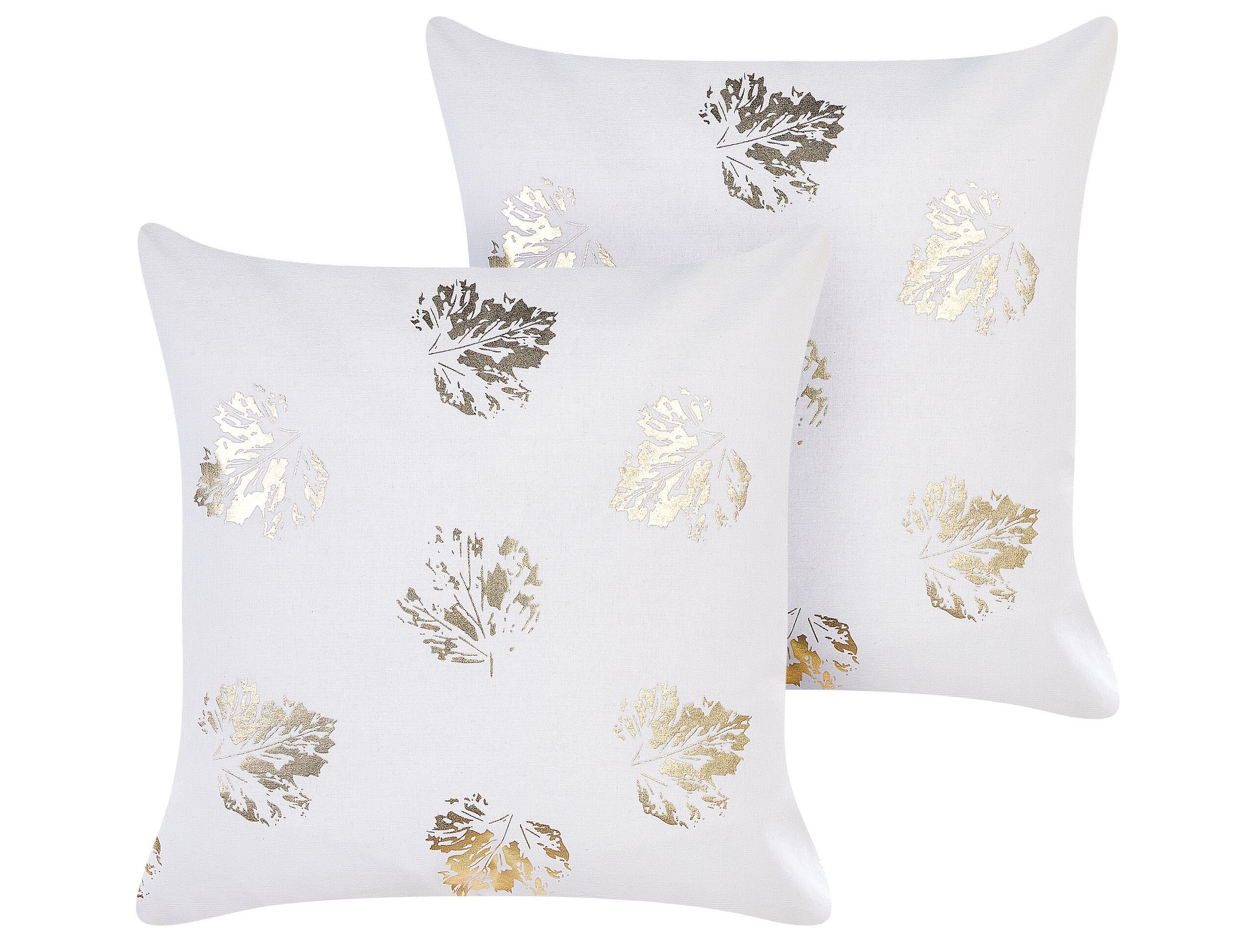 Set of 2 Velvet Cushions Leaf Pattern 45x45cm White