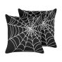 Set of 2 Velvet Cushions Spider Web Pattern 45x45cm Black and White