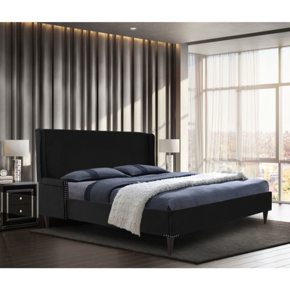 Shanaya Plush Velvet Fabric Beds Black - 5 Sizes