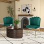 Shell Luxe Velvet Accent Chair, Modern Living Room Chair with Gold Metal Legs for Living Room, Bedroom, Home Office, Set of 2, Green