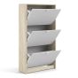 Shoe cabinet w. 3 tilting doors and 2 layers - Oak structure White