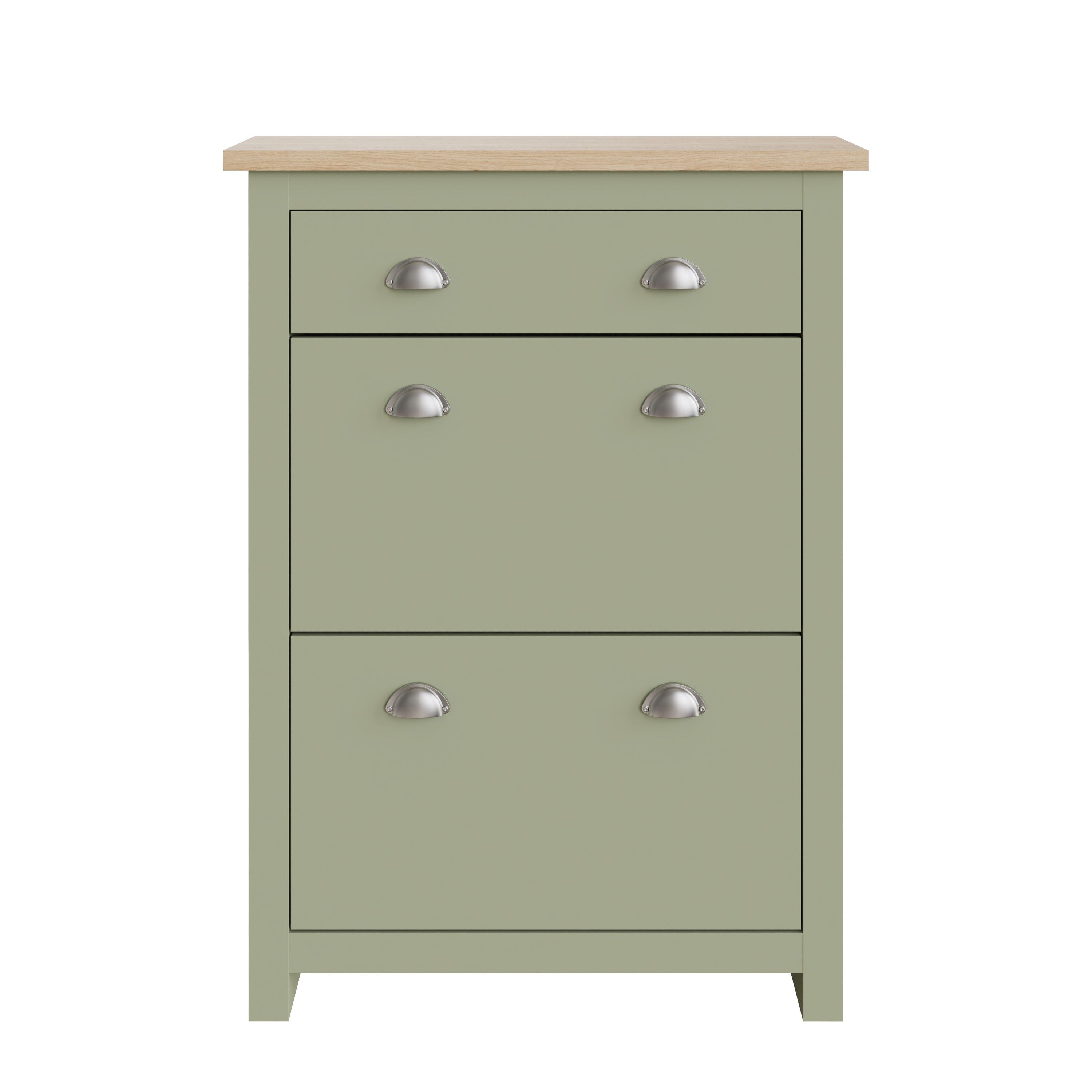 Shoes Cabinet - Antony 2 Door 1 Drawer Shoe Cabinet Sage Green and Bianco Oak
