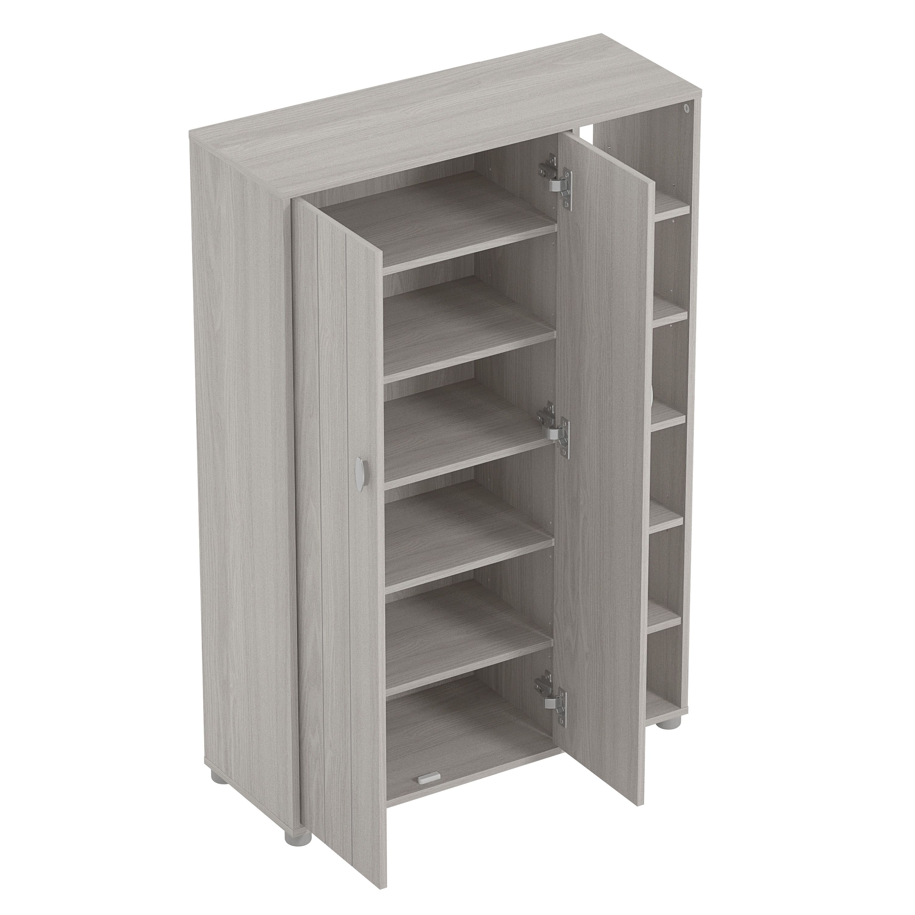 Shoes Cabinet - Siddley Shoe Cabinet with Two Doors and 6 Open Shelves Warm Grey and Oak