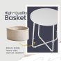 Side Table - VERRA Round End Table with Fabric Basket - White