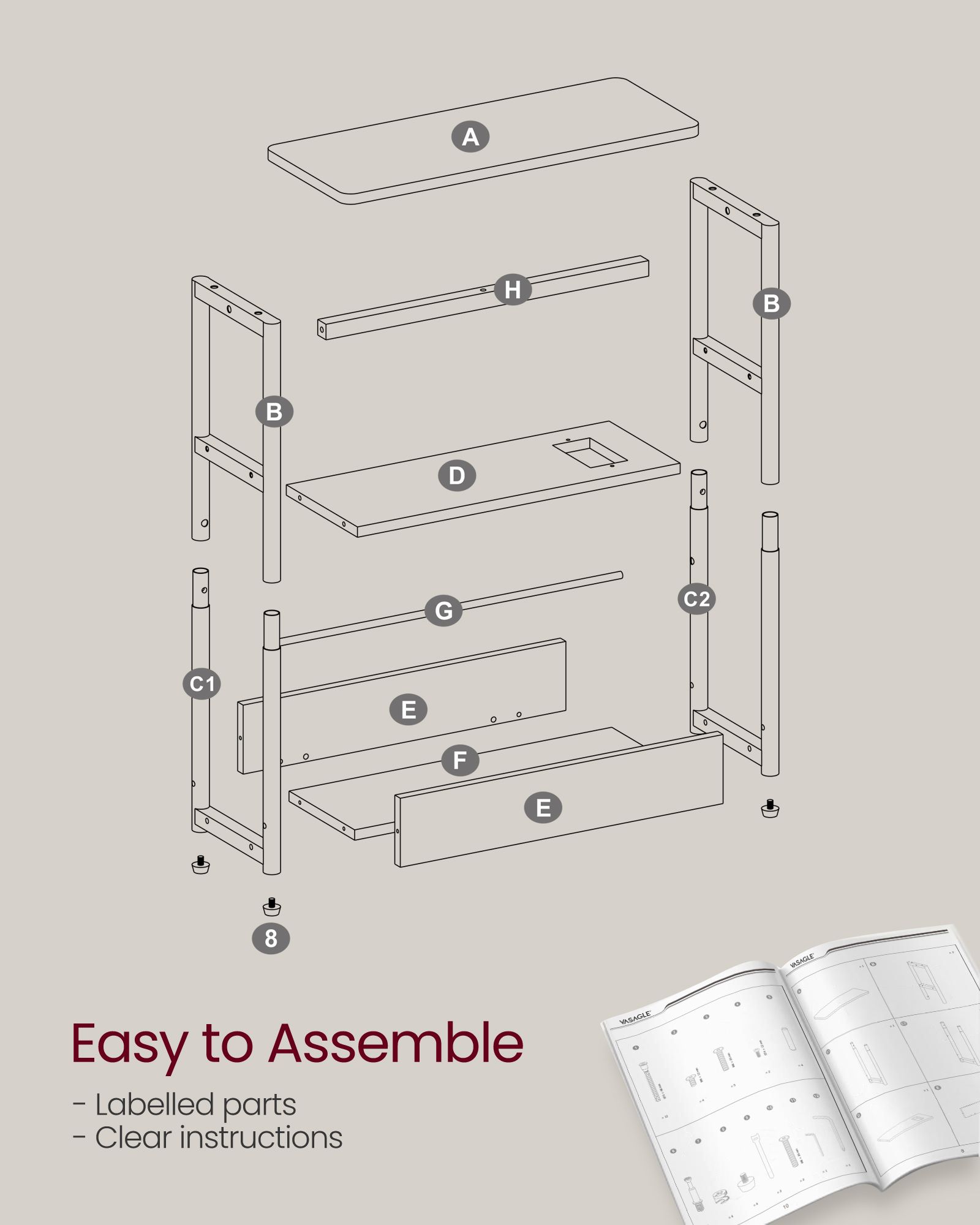 Side Table - VIVNIA 3 Tier Slim Table Natural Black