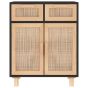 Sideboard Black 60x30x75 cm Solid Wood Pine and Natural Rattan