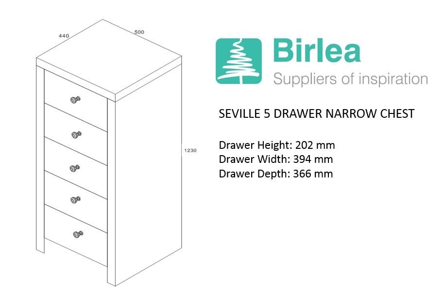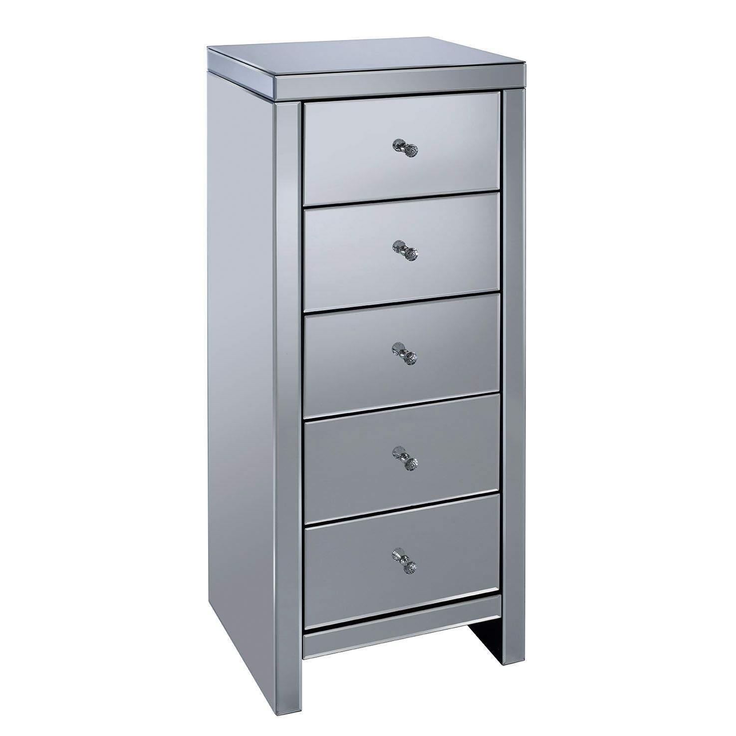 SUTTON Silver Chest of Drawers - Tallboy, Large-sized, 5 Drawers, Mirrored, Ready Assembled