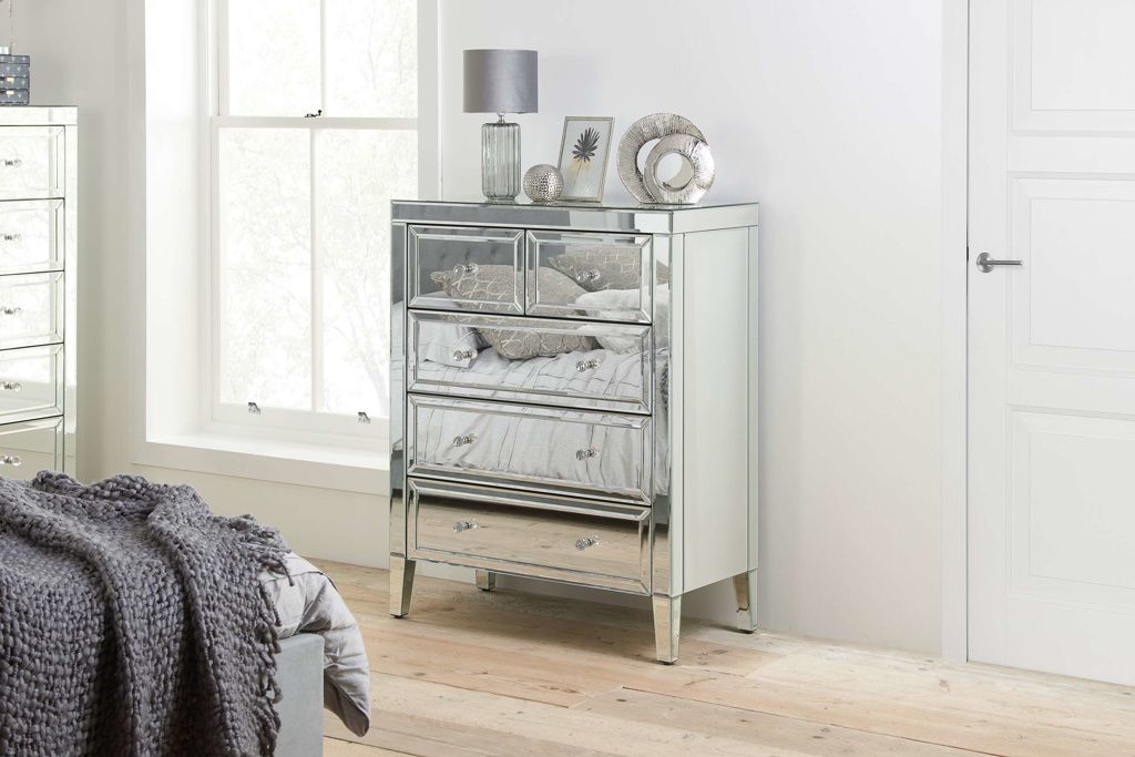 VAUGHAN Silver Chest of Drawers - Medium-sized, 5 Drawers, Mirrored