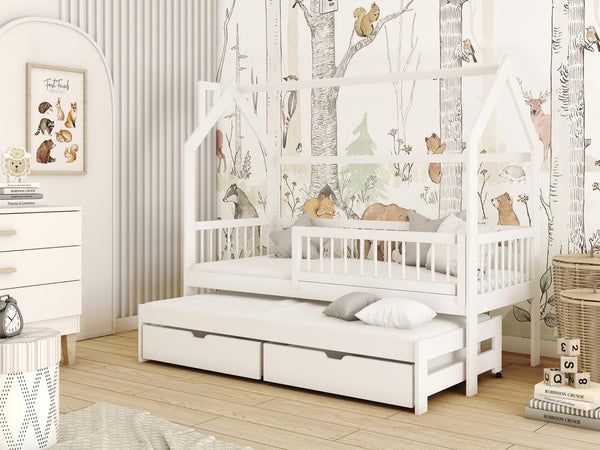Single Bed - HOSTON Wooden 3ft Bed with Trundle White Matt