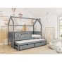 Single Bed - YORKSHIRE Wooden 3ft Bed with Trundle and Foam Mattresses Graphite
