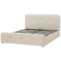 Slatted Bed Frame Beige Polyester Fabric Upholstered Wooden Legs Ottoman Storage 4ft6 EU Double Size Modern Design