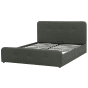 Slatted Bed Frame Dark Grey Polyester Fabric Upholstered Wooden Legs Ottoman Storage 4ft6 EU Double Size Modern Design