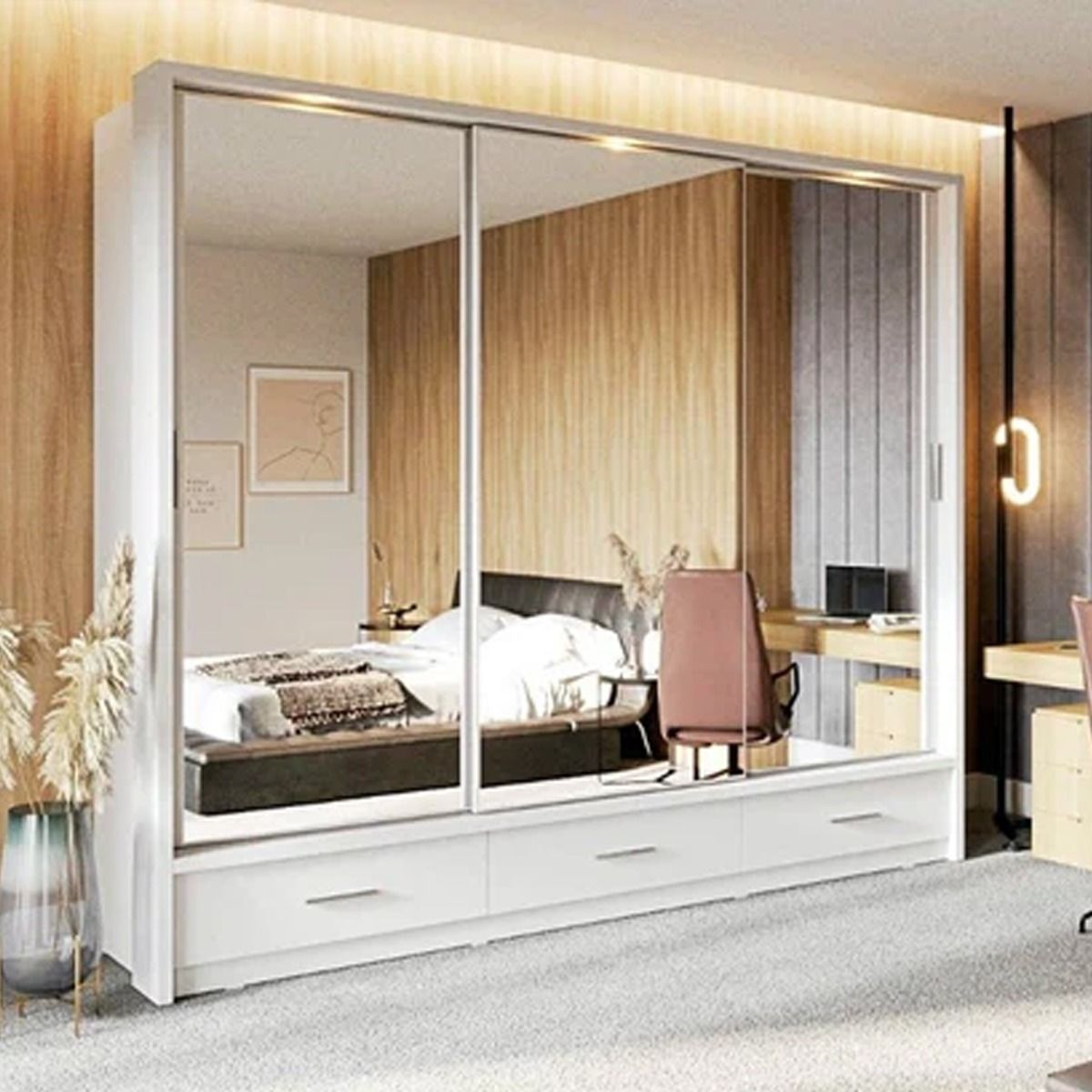 Sliding Wardrobe - ARTU 3 Door Mirrored Wardrobe White 250cm