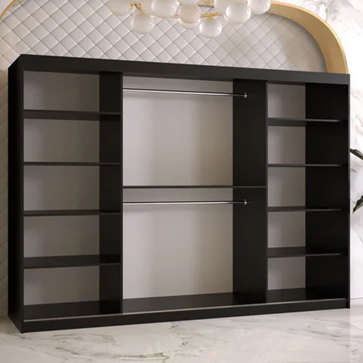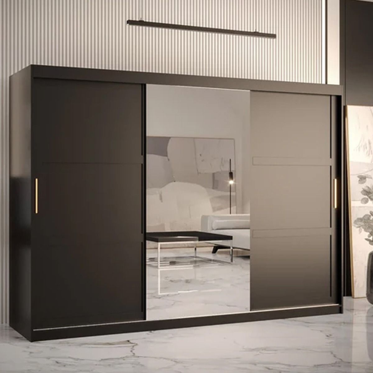 Sliding Wardrobe - CLIFFORD 3 Door Mirrored Wardrobe Black 250cm