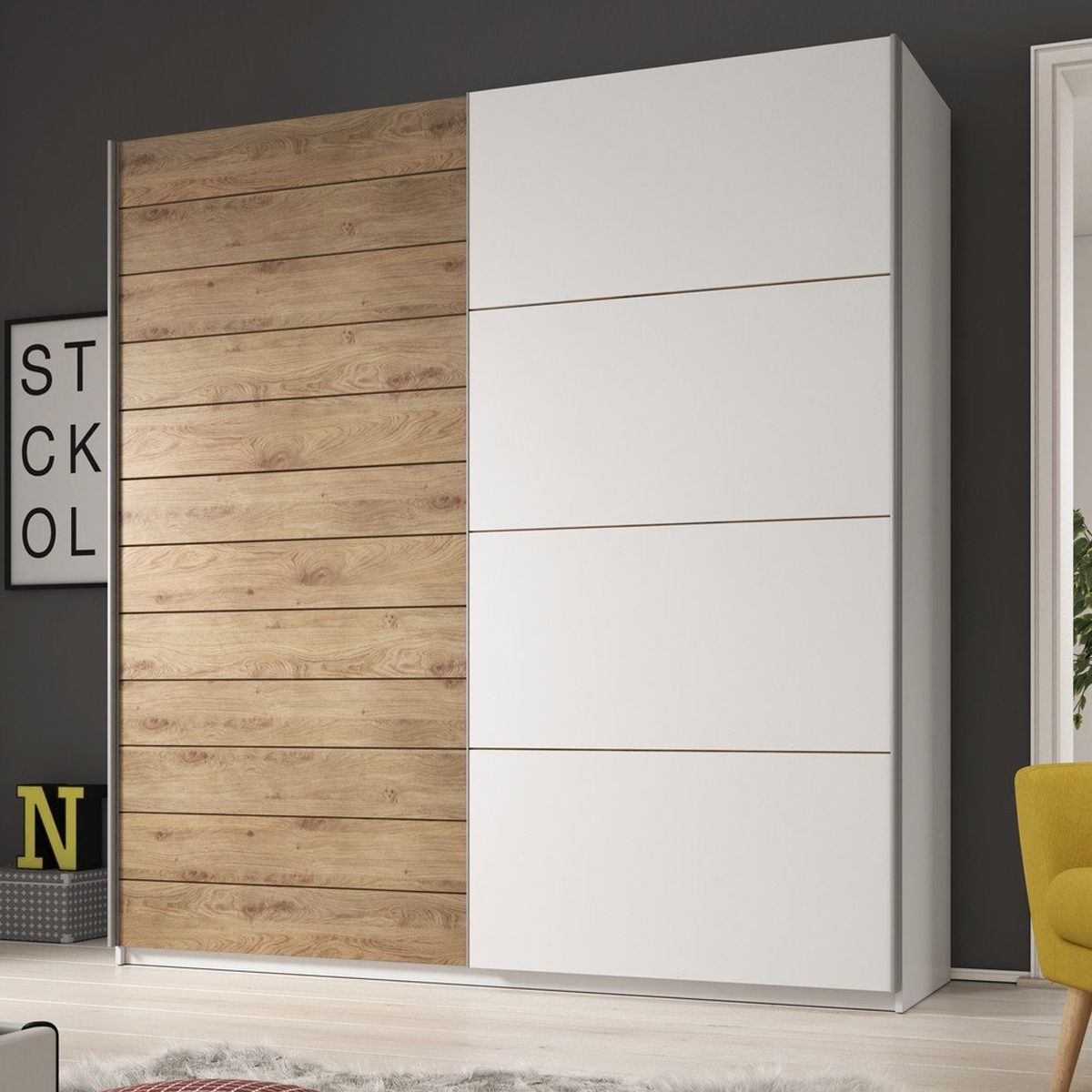 Sliding Wardrobe - GALVIN 2 Door Wardrobe Oak and White 200cm