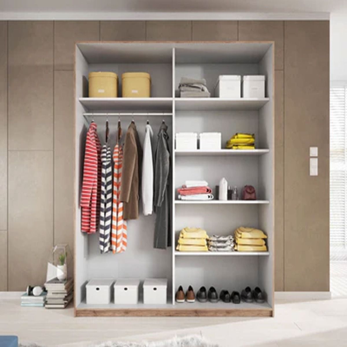 Sliding Wardrobe - GUCCI 2 Door Wardrobe White and Oak 220cm