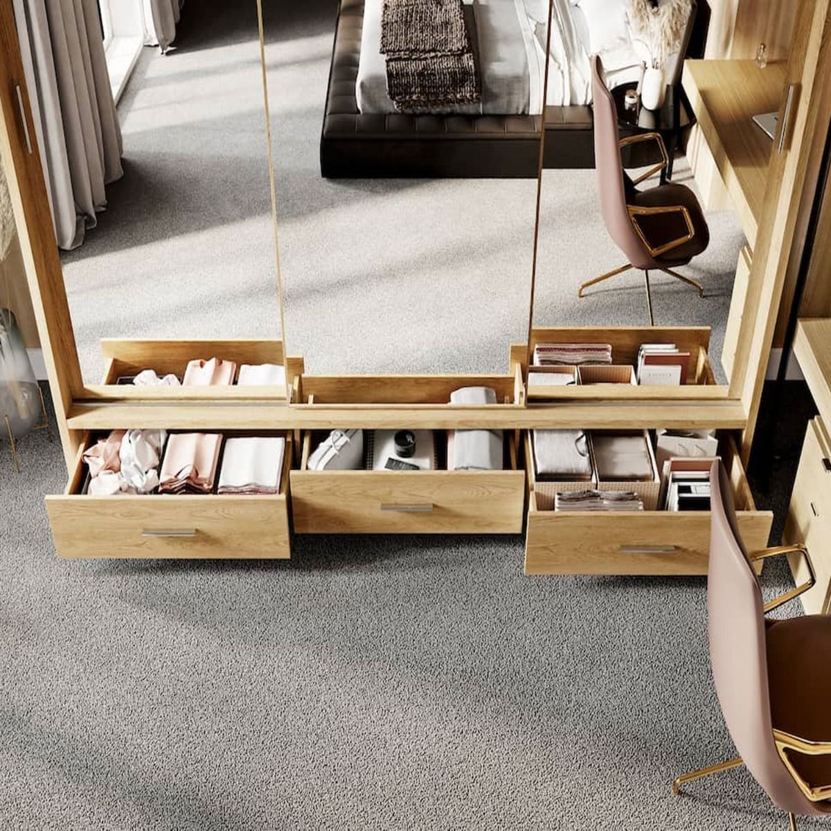 Sliding Wardrobe - IRVINE 3 Door Mirrored Wardrobe Oak 250cm