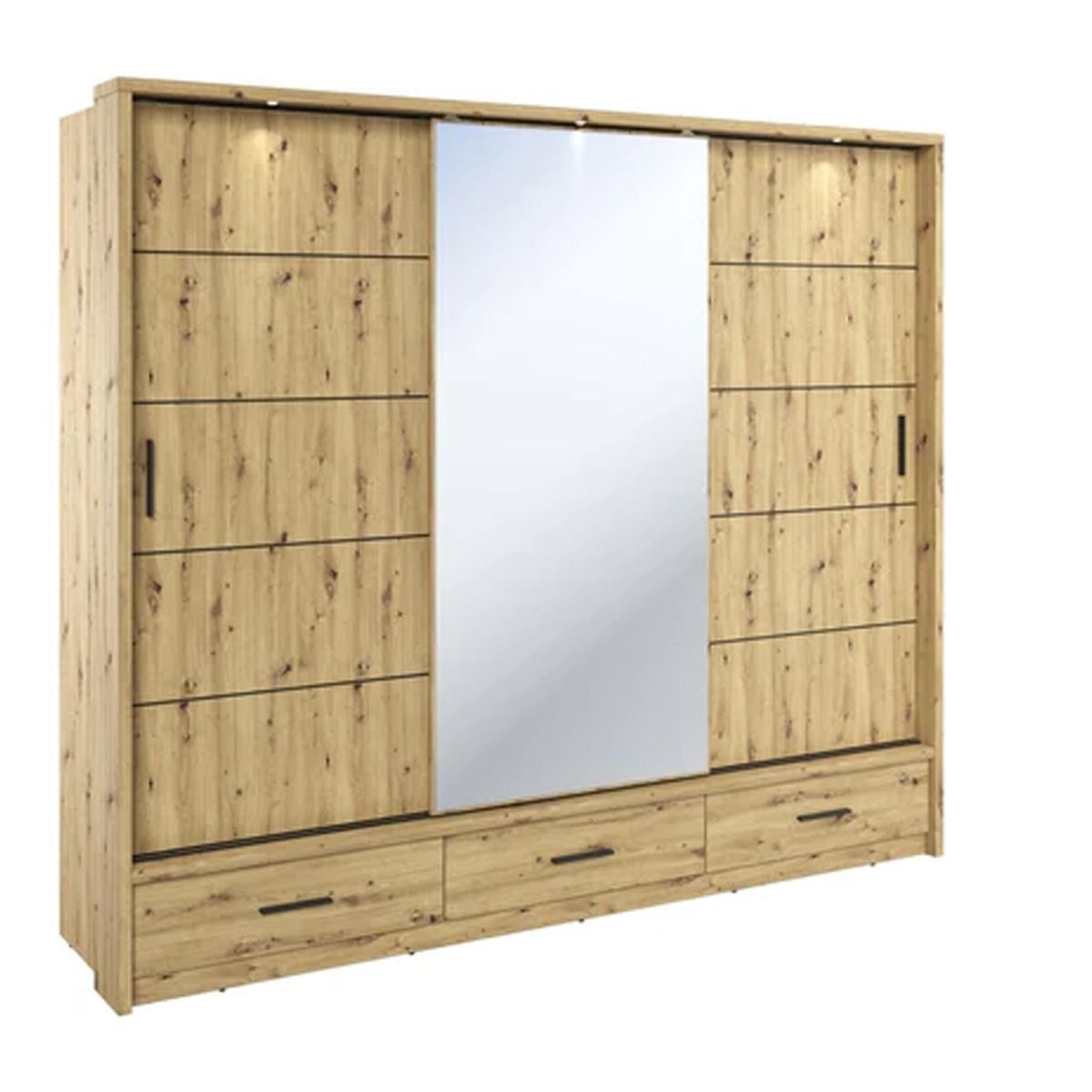 Sliding Wardrobe - IRVINE 3 Door Mirrored Wardrobe Oak Artisan 250cm