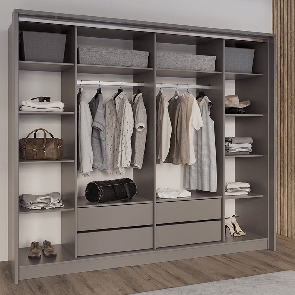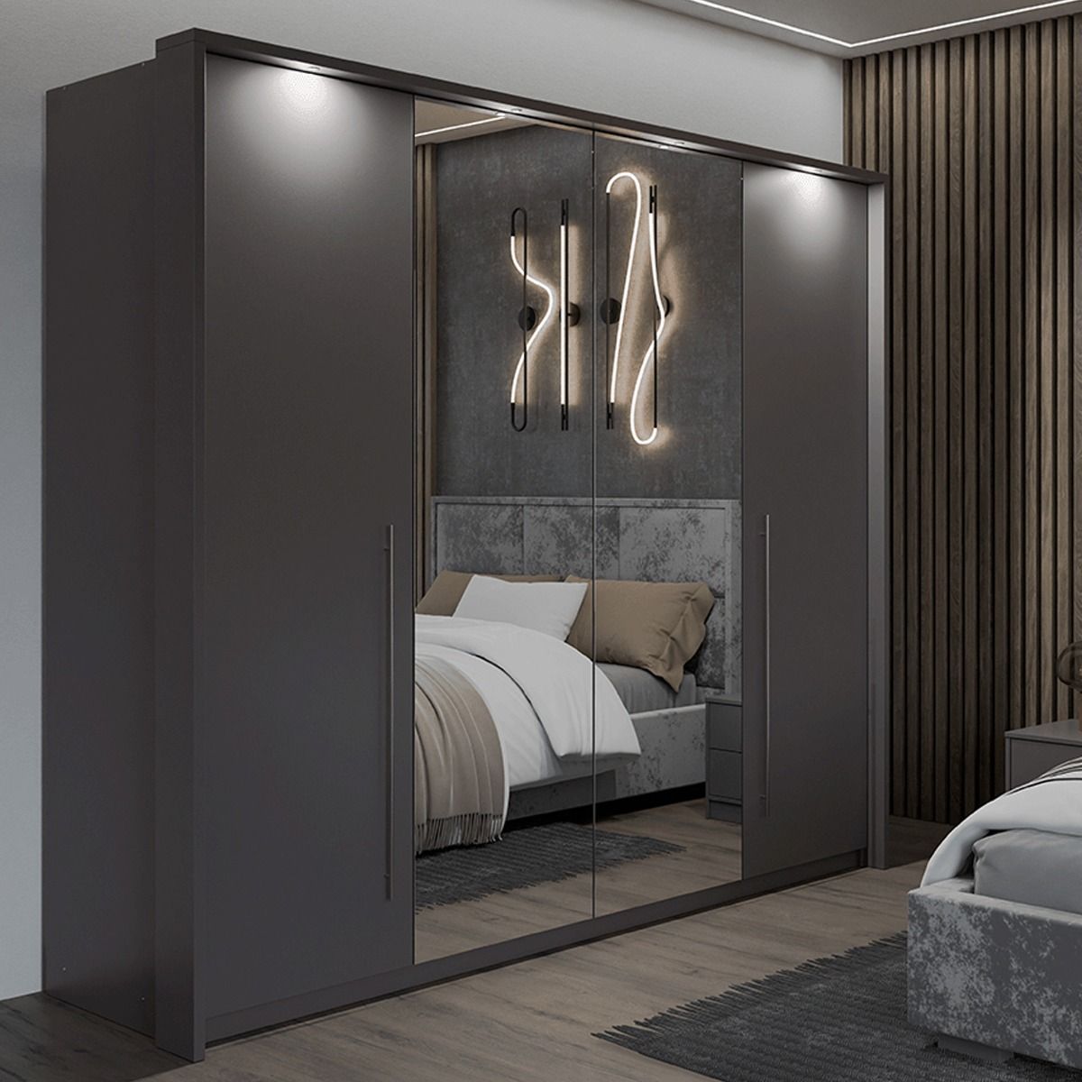 Sliding Wardrobe - KIRKLEES 2 Door Mirrored Wardrobe Grey 256cm