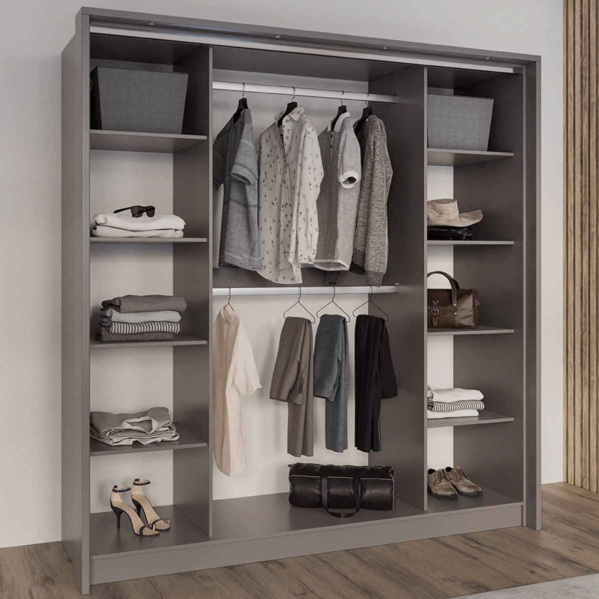Sliding Wardrobe - KIRKLEES 2 Door Mirrored Wardrobe Lava Grey 210cm