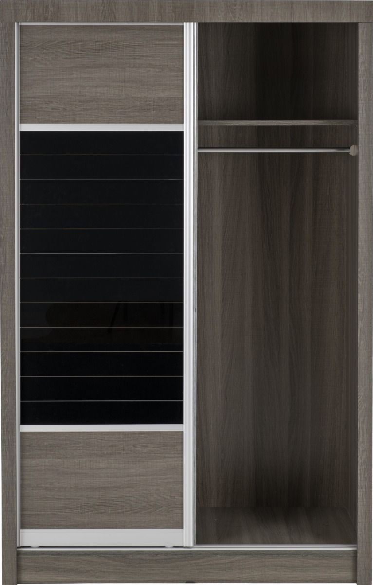 Sliding Wardrobe - LISKEARD 2 Door Mirrored Wardrobe Black 117.5cm